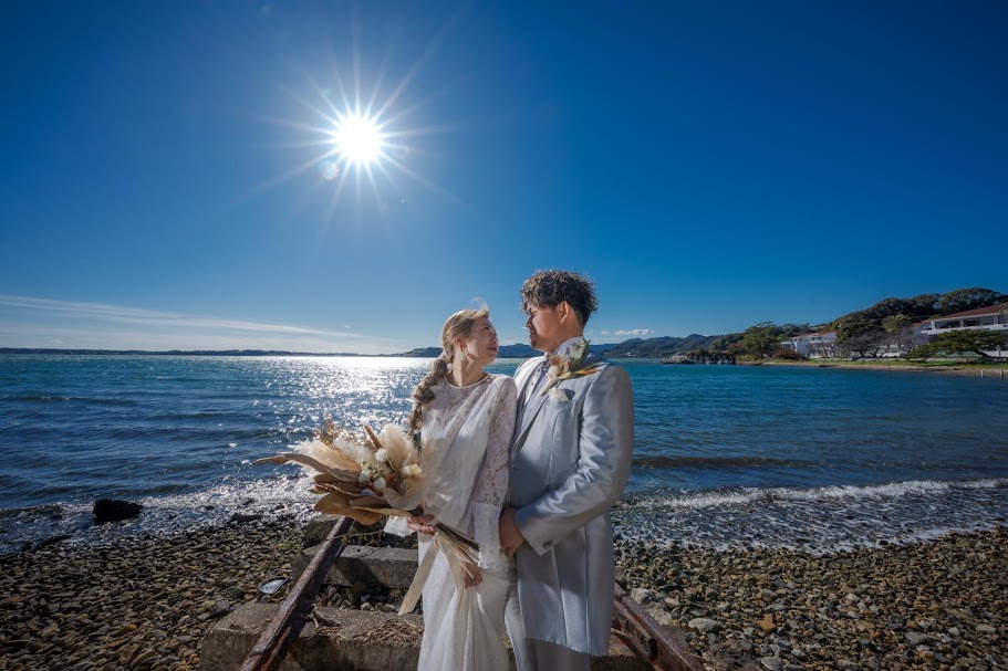 関東圏や中部圏、海外在住の方には、事前にオンライン相談のうえ、POCKET CLOSETでの衣装予約(新郎新婦3着づつ)を済ませていただき、撮影当日に試着してそのまま撮影する一日をおすすめしています。NO.1