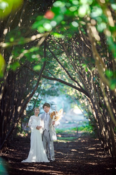 洋装撮影で人気のロケ地。木のトンネルに入ると、木漏れ日が降り注ぎ、優しい光のなかでの撮影ができます。
