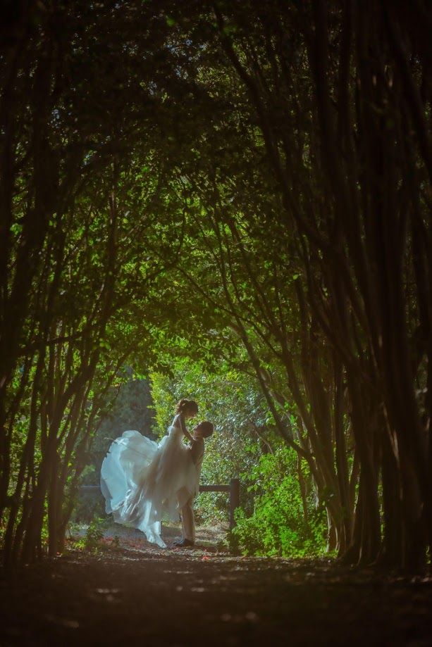 洋装撮影で人気のロケ地。木のトンネルに入ると、木漏れ日が降り注ぎ、優しい光のなかでの撮影ができます。