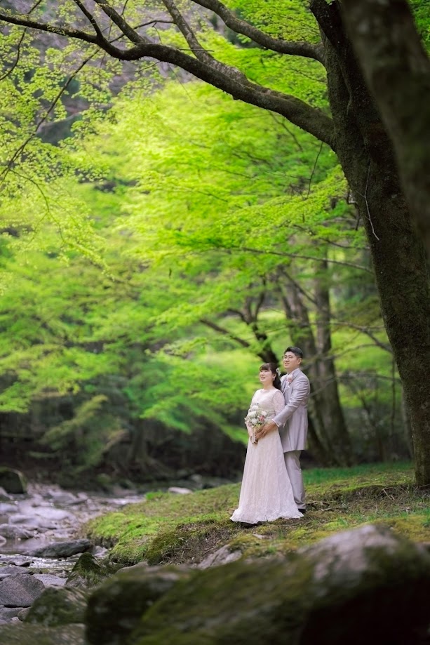 春の巴川はまだ新芽の若葉がいっぱいで、とてもすがすがしい新緑の撮影ができます。春を待ちわびた森の雰囲気をぜひロケーションフォトとして楽しんでみてください。最高のシーズンです。