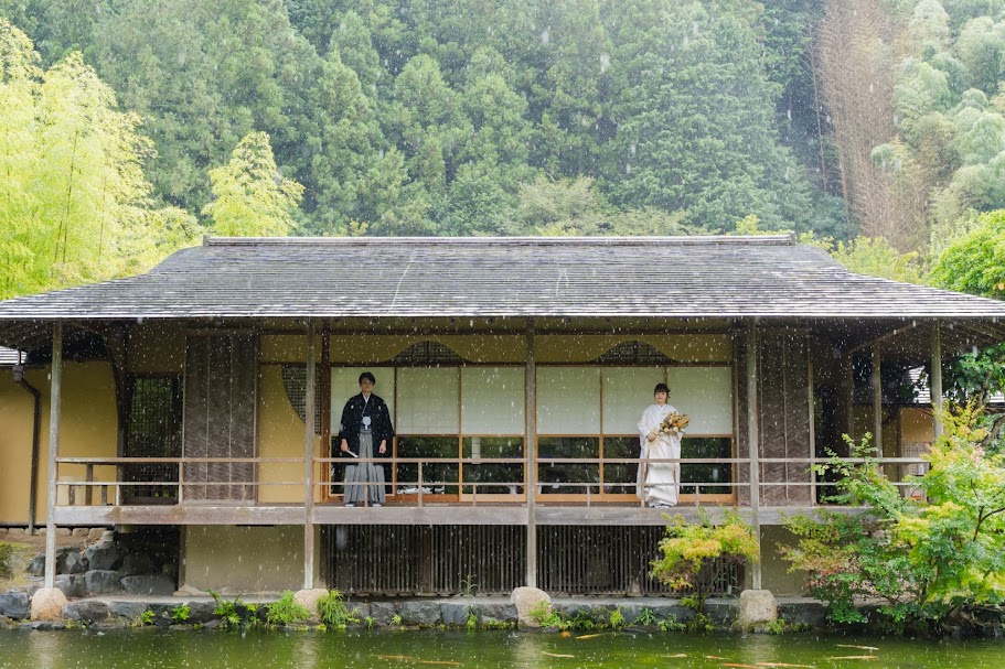 静岡市内からも車で40分程度の玉露の里は、和装が似合う人気ロケ地。とくに瓢月亭(ひょうげつてい)という茶室は広い池に囲まれ、日本の大きな和庭園を舞台に撮影することができます。
