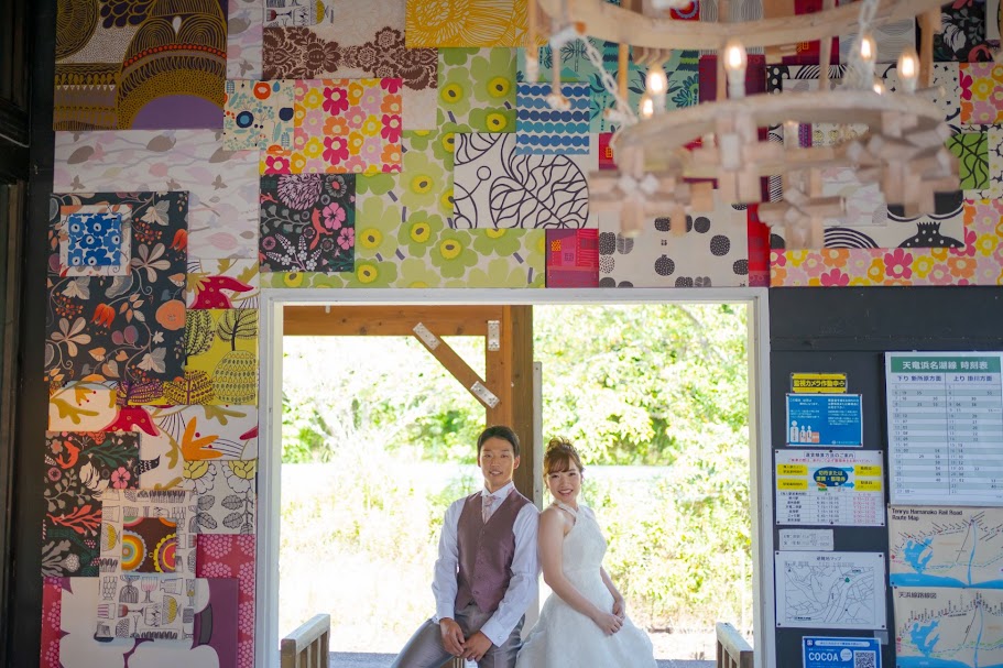 marimekkoのファブリックが印象的な、天竜浜名湖鉄道の都田駅。外観も内装もカラフルな北欧コーディネートに囲まれて撮影ができます。運よく運行中の車両に会えることも…。