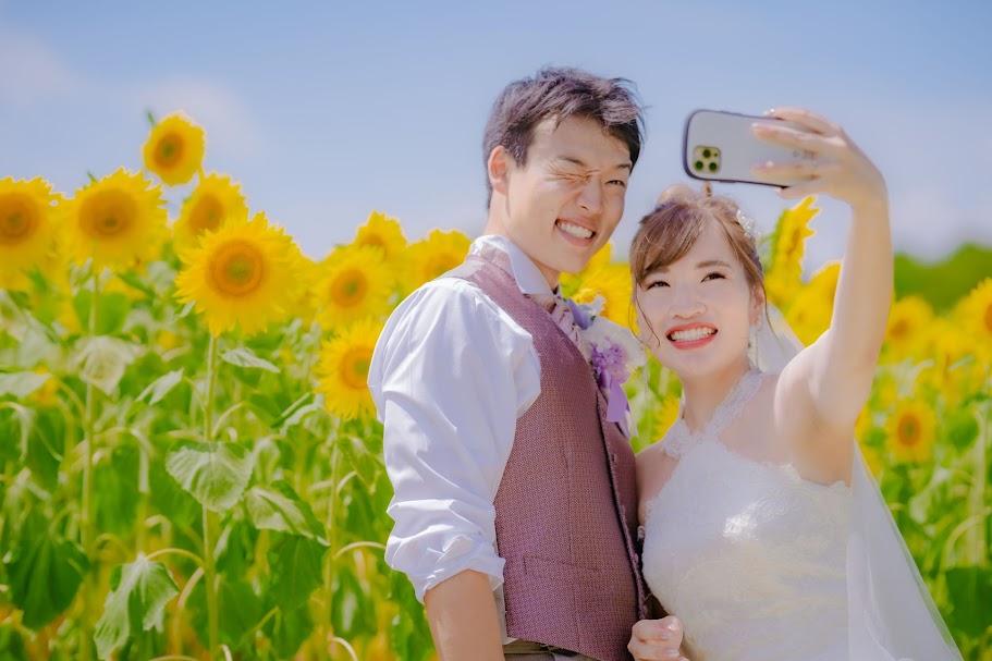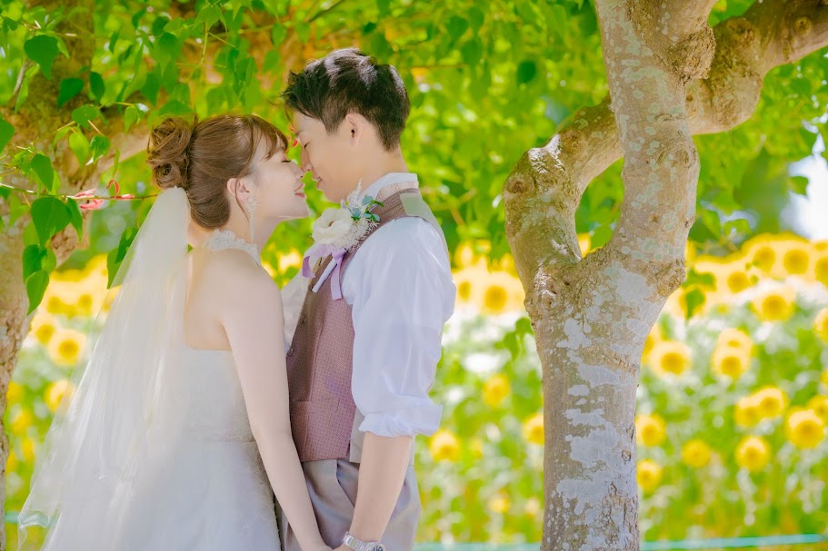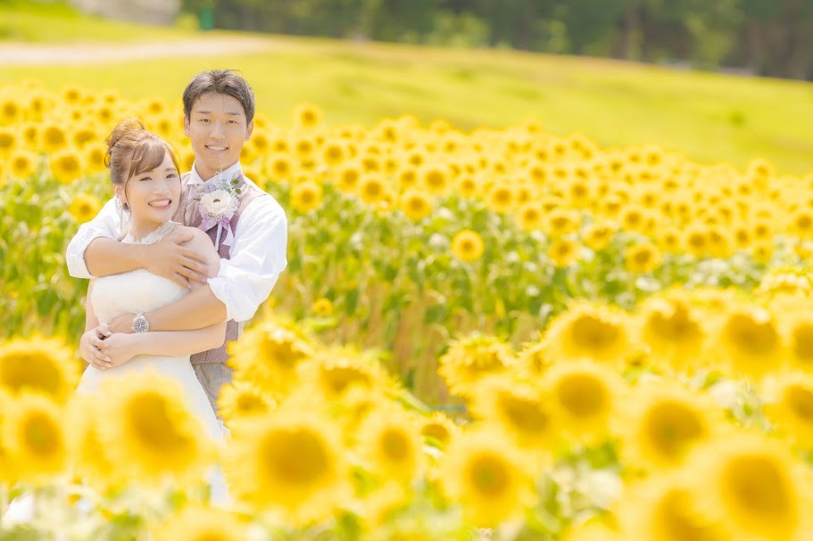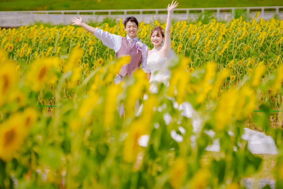7月の浜名湖ガーデンパークはひまわり。背の高いひまわりのお花に囲まれて、夏らしい撮影を楽しんで。