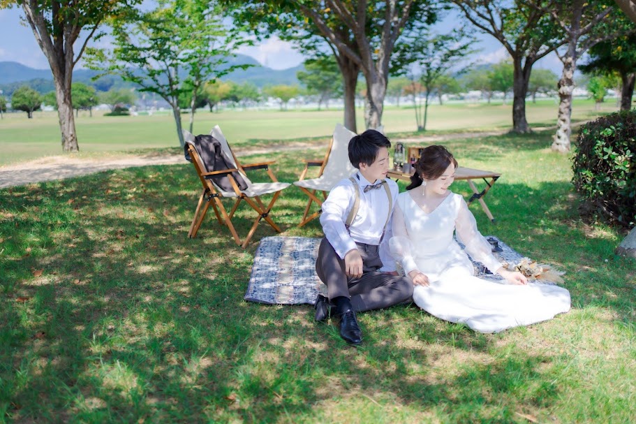 新緑から深緑に変わる7月の芝生広場。どんなシーンでも絵になる季節です。キャンプ好きの方は大好きなギアをもってきて撮影するのもいいですね!アウトドア感たっぷりです。