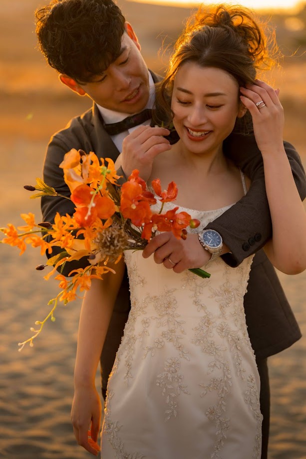 関東圏や中部圏、海外在住の方には、事前にオンライン相談のうえ、POCKET CLOSETでの衣装予約(新郎新婦3着づつ)を済ませていただき、撮影当日に試着してそのまま撮影する一日をおすすめしています。NO.1