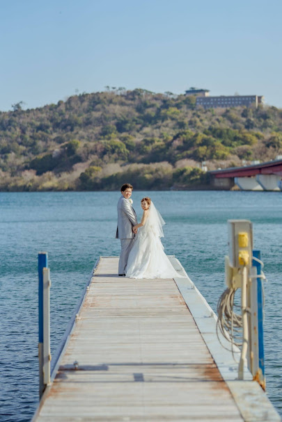 浜名湖沿いのチャペルで撮影ができる寸座マリーナ。3月は桜のシーンと一緒に撮影される方が多い人気スポットです。ヨットが停泊するマリーナもとても素敵ですね。