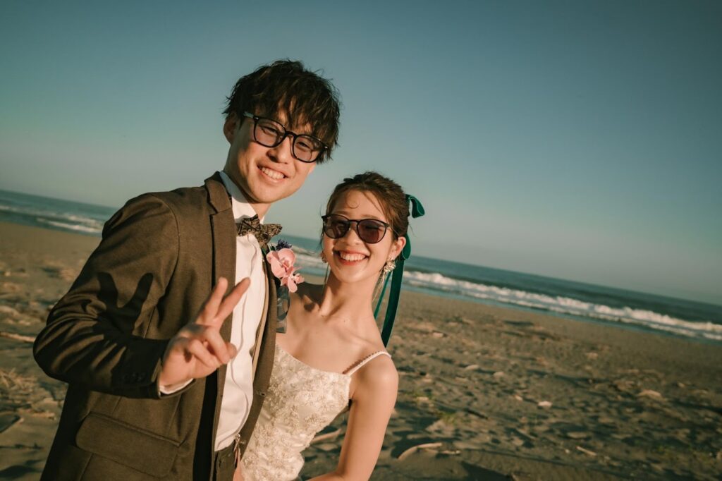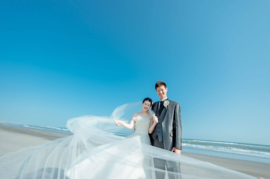 暖かくなる4月は、いつも風が強い白須賀海岸も快適に撮影できます。春を待ちわびたおふたりには浜辺でのロケーションフォト、ぜひ楽しんでもらいたいです。