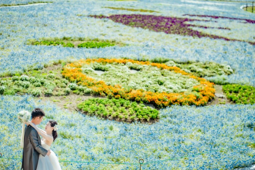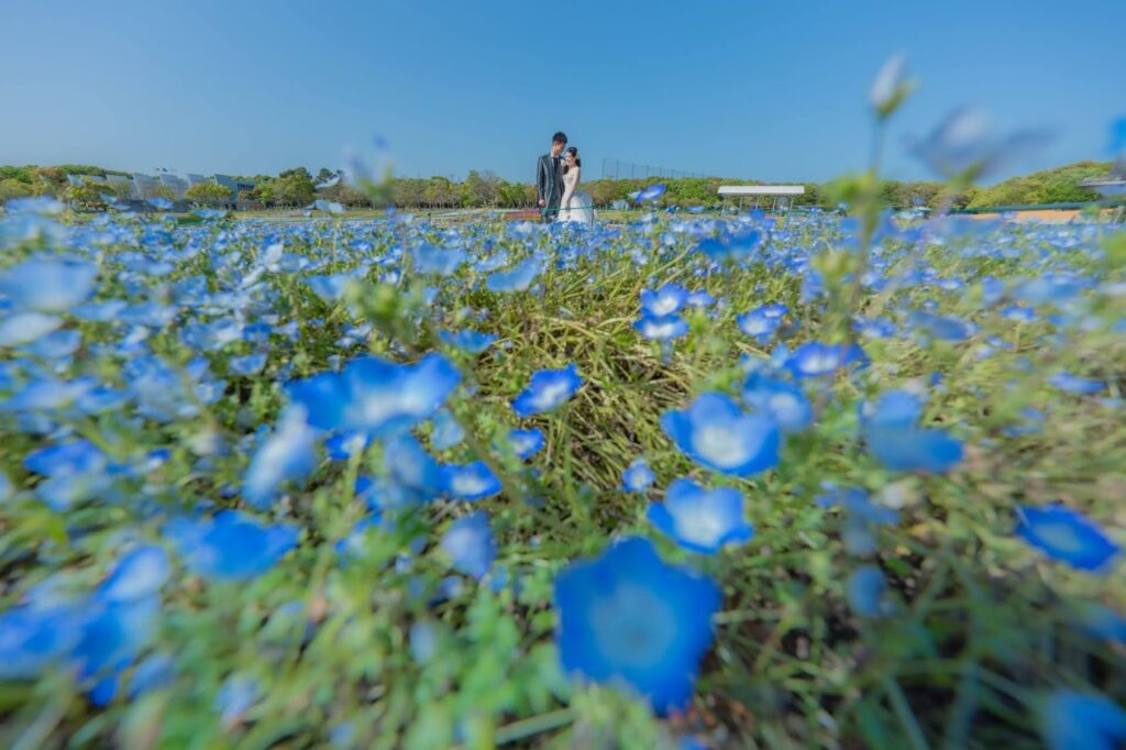 4月はネモフィラが咲く浜名湖ガーデンパーク。同時にたくさんの花も咲きますので、お花と撮りたい方にはおすすめスポットです。ツツジ、サツキも圧倒的なボリュームで咲く姿は見事です。